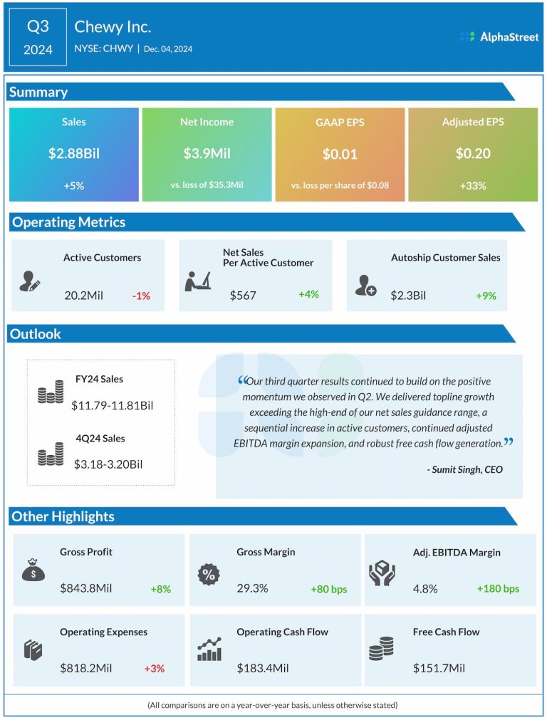 Shares of Chewy, Inc. (NYSE: CHWY) were down over 1% on Tuesday. The stock has gained 72% over...