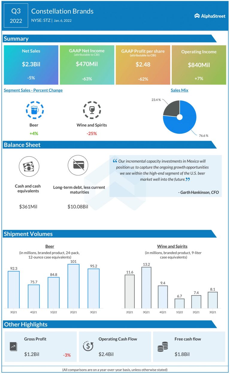 Constellation Brands (NYSE: STZ), the largest beer producer in the U.S, reported third-quarter 2022 earnings results today. The...