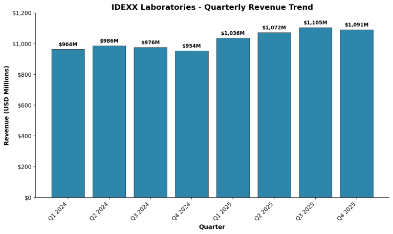 IDEXX Laboratories, Inc. (NASDAQ: IDXX) reported fourth quarter 2025 revenue of $1.09 billion, an increase of 14% as...