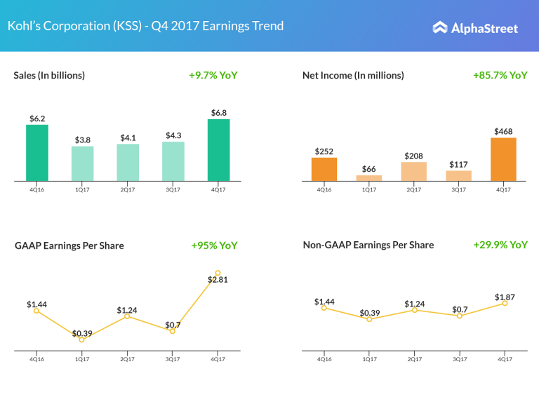 Kohl’s (KSS) reported its fourth quarter results today. Revenue improved 9.2% to $6.78 billion, and profits came in...
