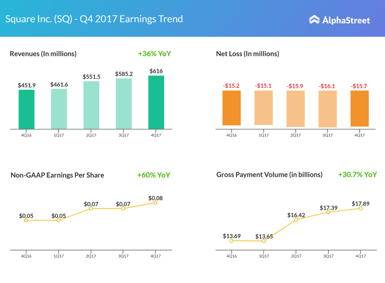 Square’s fourth quarter revenues surged 36% to $616 million. GAAP loss remained flat at $0.04 per share vs....