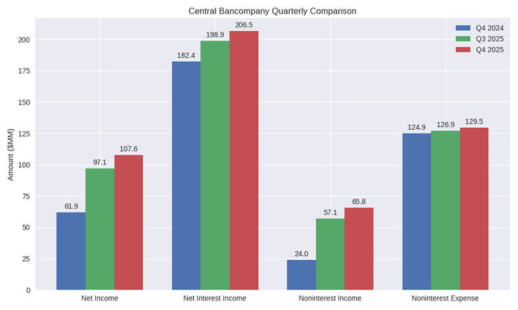 For the fourth quarter ended December 31, 2025, Central Bancompany reported the following consolidated GAAP figures: