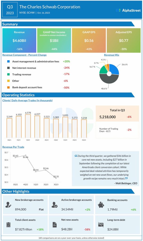Net income available to common stockholders was $1 billion, or $0.56 per share, compared to $1.8 billion, or $0.99 per share, last year. Adjusted EPS fell 30% to $0.77.