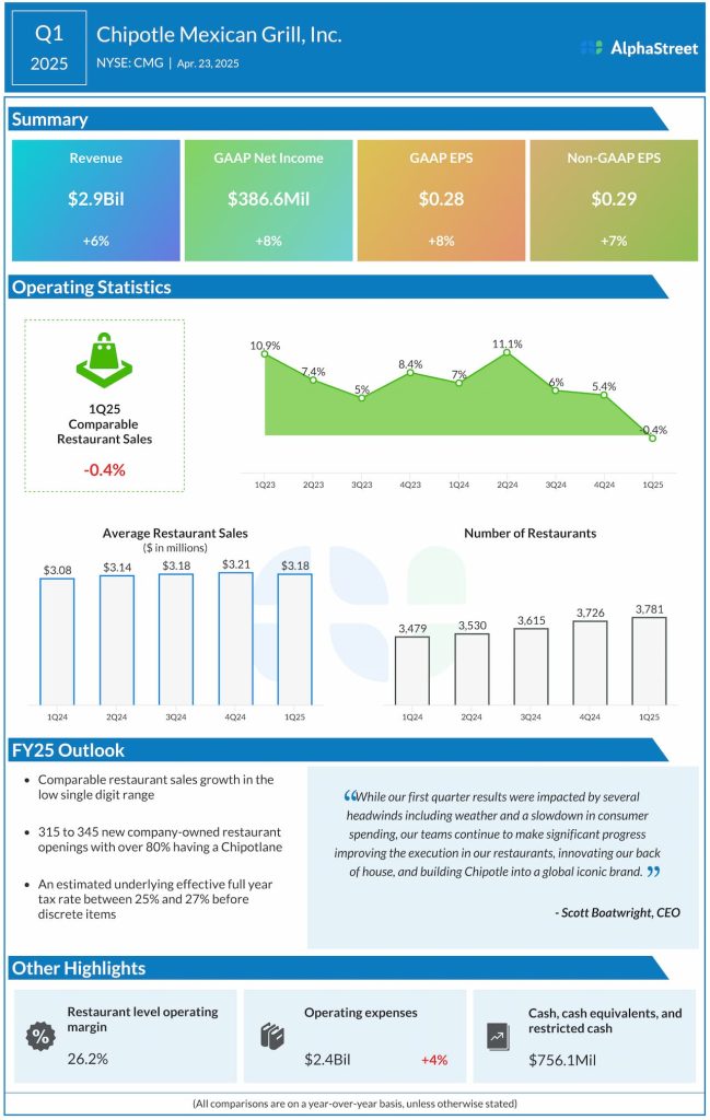 For full-year 2025, CMG expects comparable restaurant sales growth in the low single digit range.