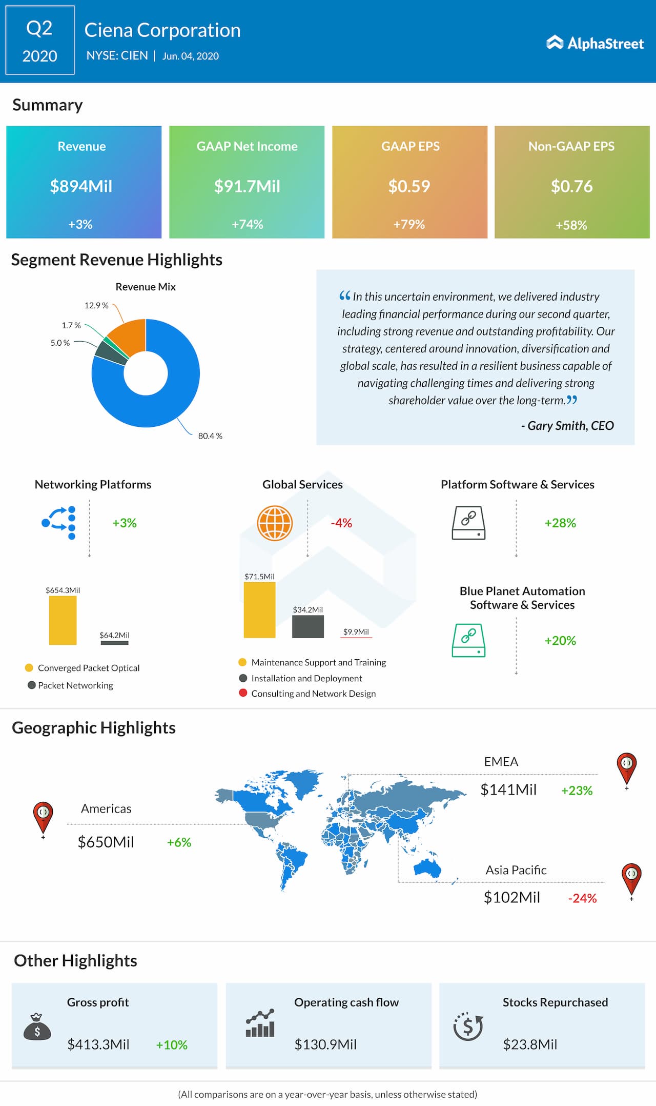 Ciena Corporation (NYSE: CIEN) reported a 74% jump in earnings for the second quarter of 2020 driven by higher revenue and lower operating expenses. The results exceeded analysts’ expectations.