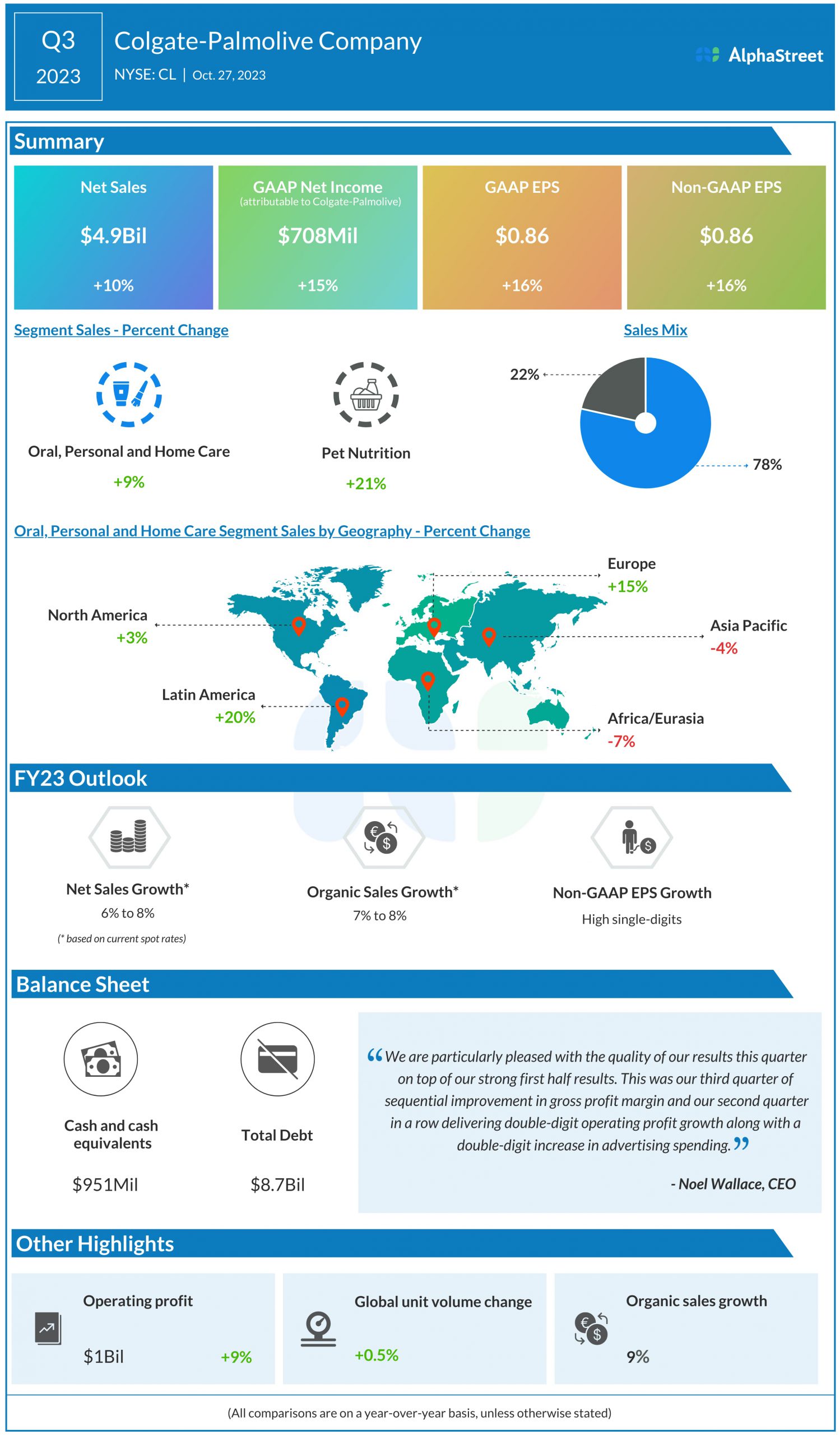Colgate-Palmolive Company (NYSE: CL) reported third quarter 2023 earnings results today.