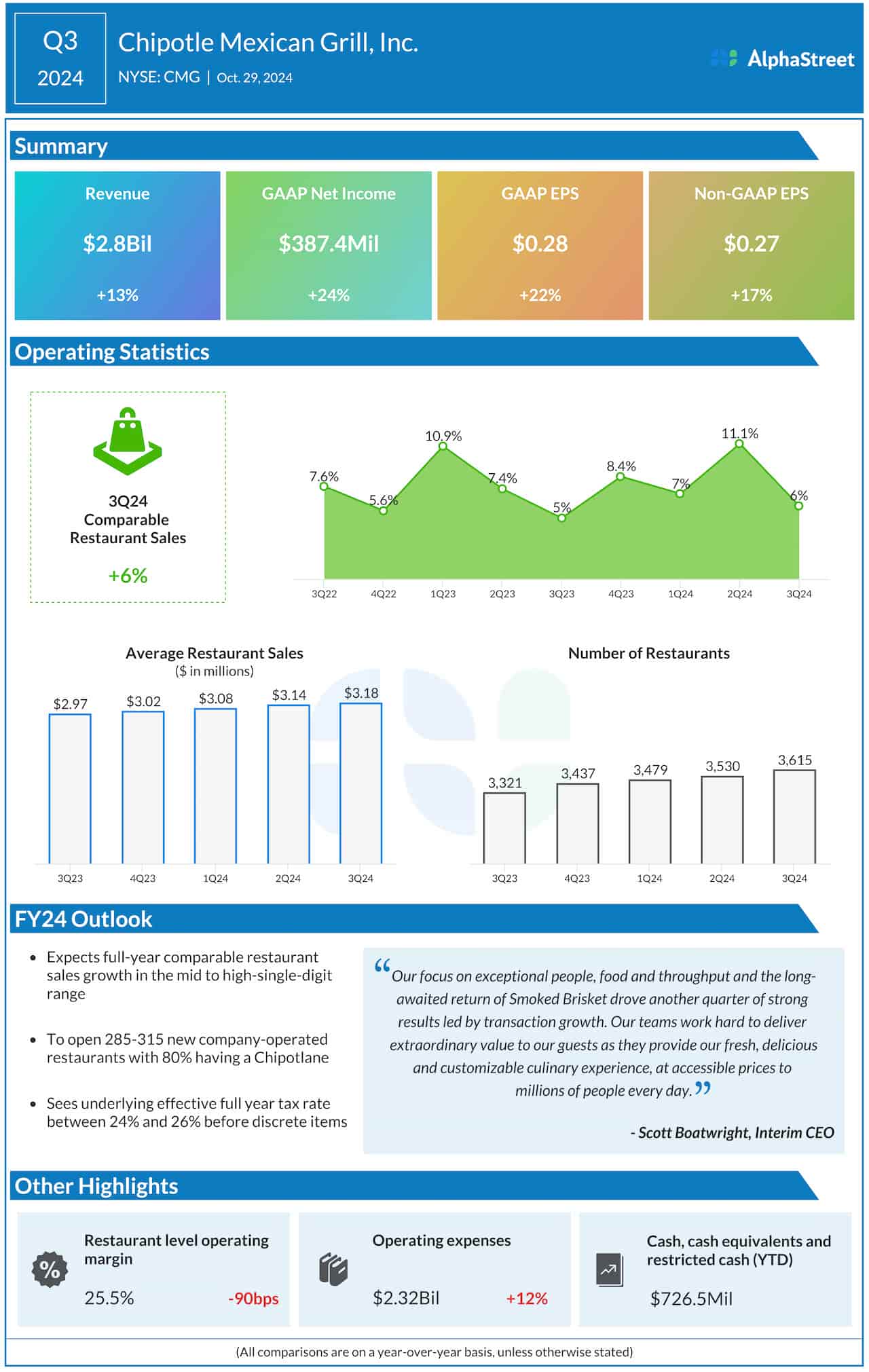 Chipotle Mexican Grill, Inc. (NYSE: CMG), a leading fast-casual restaurant chain, has reported operating results for the third quarter of 2024.