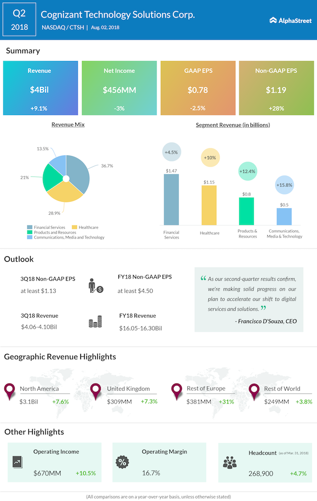 Cognizant Technology Solutions Corporation (CTSH) reported revenues of $4.01 billion for the second quarter of 2018, an increase of 9.2% compared to the same period last year.