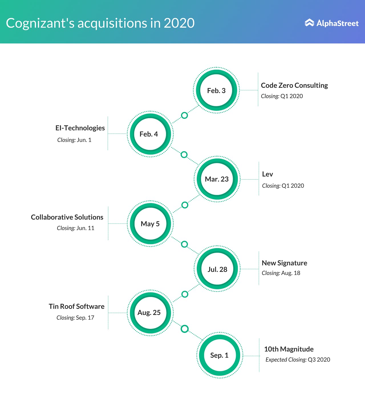 Code Zero Consulting was the first company acquired by Cognizant in this year. Code Zero, which is a Salesforce Platinum Partner, helps companies digitally transform by providing strategy, implementation and migration capabilities. This acquisition helped in strengthening Cognizant’s cloud solutions portfolio.