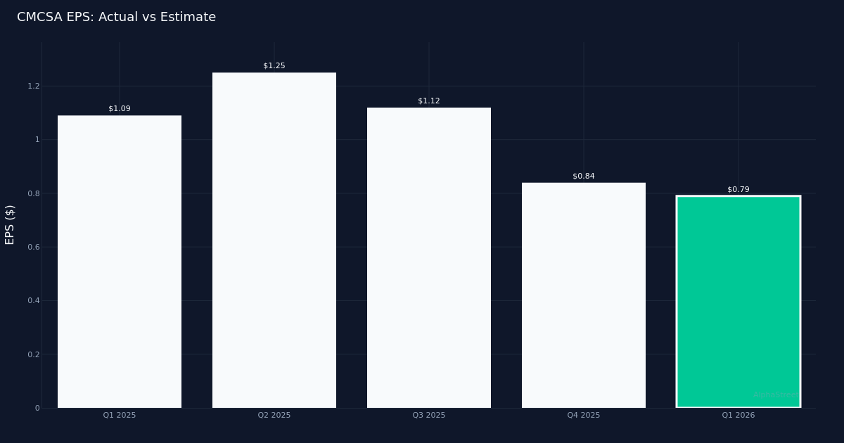 Solid beat. Comcast Corporation (NASDAQ:CMCSA) delivered Q1 2026 adjusted EPS of $0.79, topping Wall Street’s $0.76 estimate by 3.9%, as the telecom and media giant demonstrated continued momentum in its wireless business while navigating headwinds in its legacy connectivity operations. Revenue totaled $31.46B for the quarter, up 5.3% from $29.89B in Q1 2025, reflecting the company’s ability to extract growth from shifting consumer preferences despite pressure on traditional broadband and video services. The company earned $2.86B in adjusted net income for the period, underscoring the profitability of its diversified service portfolio.