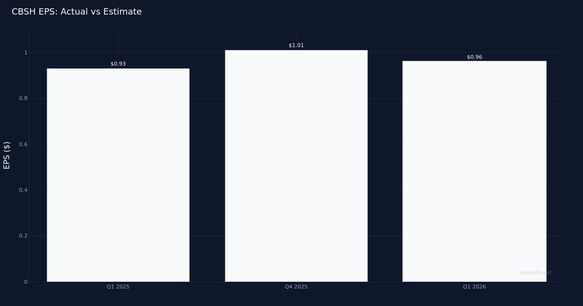 Commerce Bancshares, Inc. (CBSH) posted Q1 2026 diluted EPS of $0.96. Revenue totaled $475.7M for the quarter. Revenue was up 11.1% year-over-year.