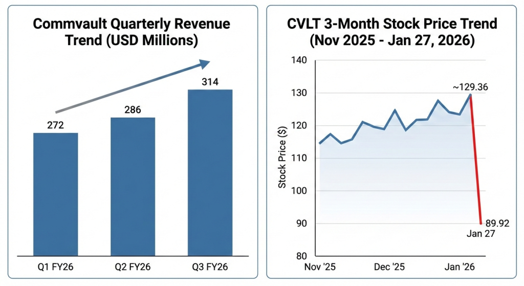 Shares of Commvault Systems (NASDAQ: CVLT) collapsed more than 30% on Tuesday, hitting two-year lows as investors looked past a third-quarter earnings beat to focus on a sharp deceleration in guidance and a shortfall in net new annual recurring revenue (ARR).