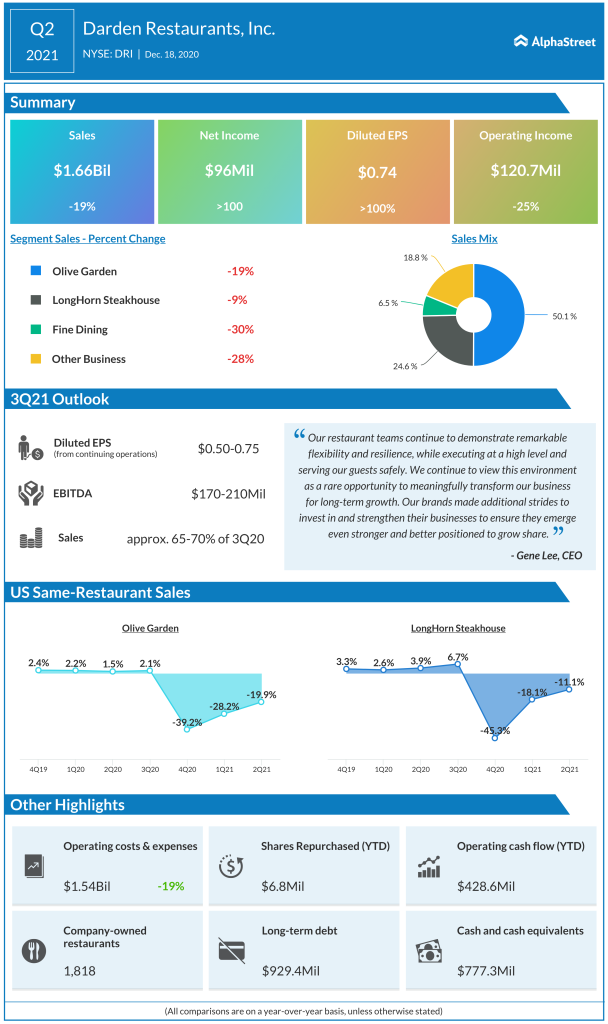 Yum Brands Inc. (NYSE: YUM) too suffered from pandemic-related store closures and saw revenue fall 9% in the second quarter of 2020 along with declines across all its segments. However the company managed to improve its performance in Q3 with a net sales increase of 8% and sales growth in the Pizza Hut and Taco Bell divisions. KFC posted a sales decline of 4% in Q3 after seeing a 30% drop in Q2.