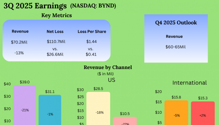 Beyond Meat, Inc. (NASDAQ: BYND) reported its third quarter 2025 earnings results. Net revenues were $70.2 million, down 13.3% year-over-year. Net loss