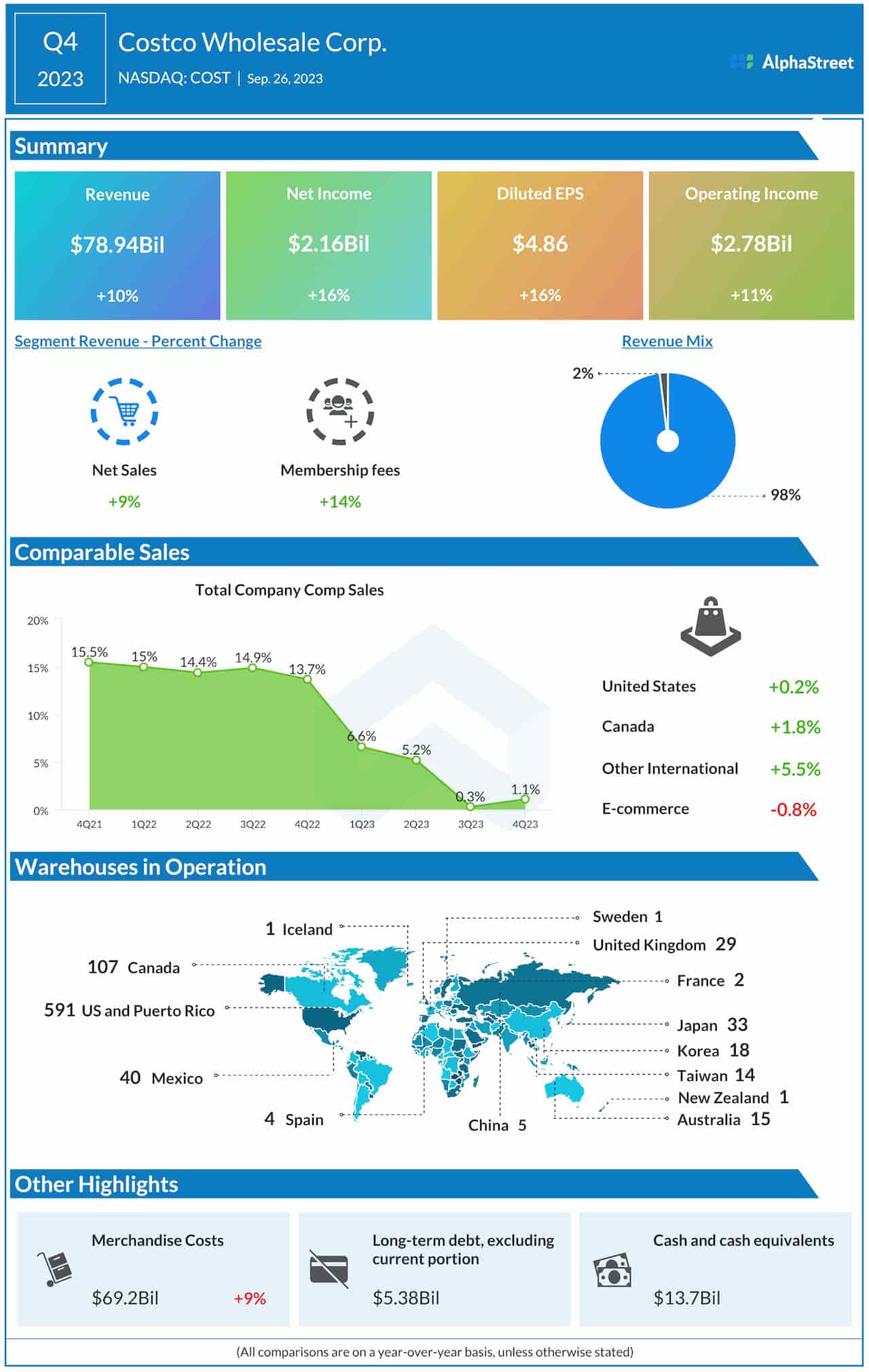 Costco Wholesale Corporation (NASDAQ: COST), which operates a chain of membership warehouses, on Tuesday reported results for the fourth quarter of fiscal 2023.