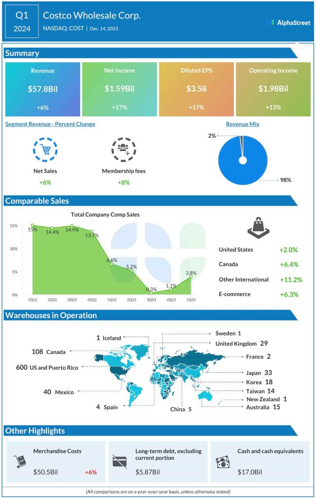 Revenues increased to $58.0 billion in the first three months of 2024 from $54.4 billion in the corresponding period of 2023. Total comparable store sales grew 3.8% during the three months.