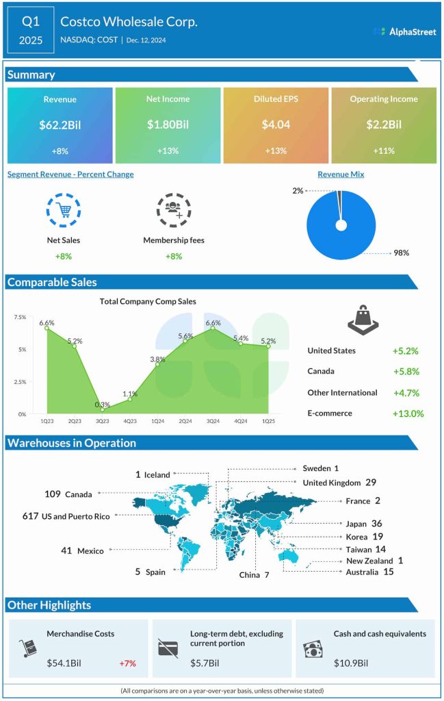 Revenues increased to $62.2 billion in the November quarter from $57.8 billion in the corresponding period last year. Total comparable store sales grew 5.2% year-over-year during the three months.