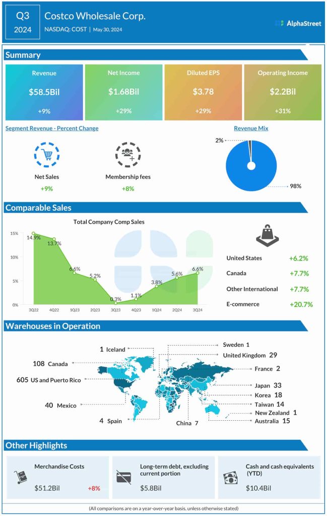 Q3 revenues increased to $58.52 billion from $53.65 billion in the corresponding period of 2023. Total comparable store sales grew 6.6% during the three months.