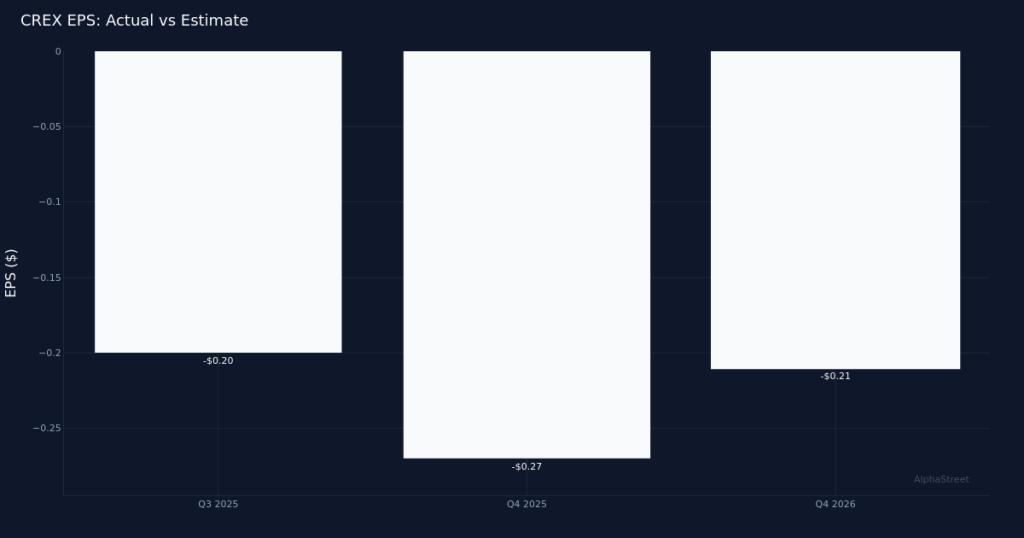 CREX|EPS -$0.21|Rev $23.9M|Net Loss $2.0MCreative Realities, Inc. posted a narrower loss for the fourth quarter of 2025 as revenue more than doubled, driven by strong demand for its digital marketing technology solutions. The company reported a loss of $0.21 per share on revenue of $23.9M, compared with a loss of $0.27 per share on $11.0M in revenue during the same period last year. The bottom line showed a net loss of $2.0M for the quarter.