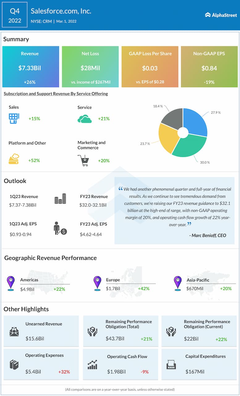 Salesforce (NYSE:CRM) reported fourth quarter 2022 earnings results today.