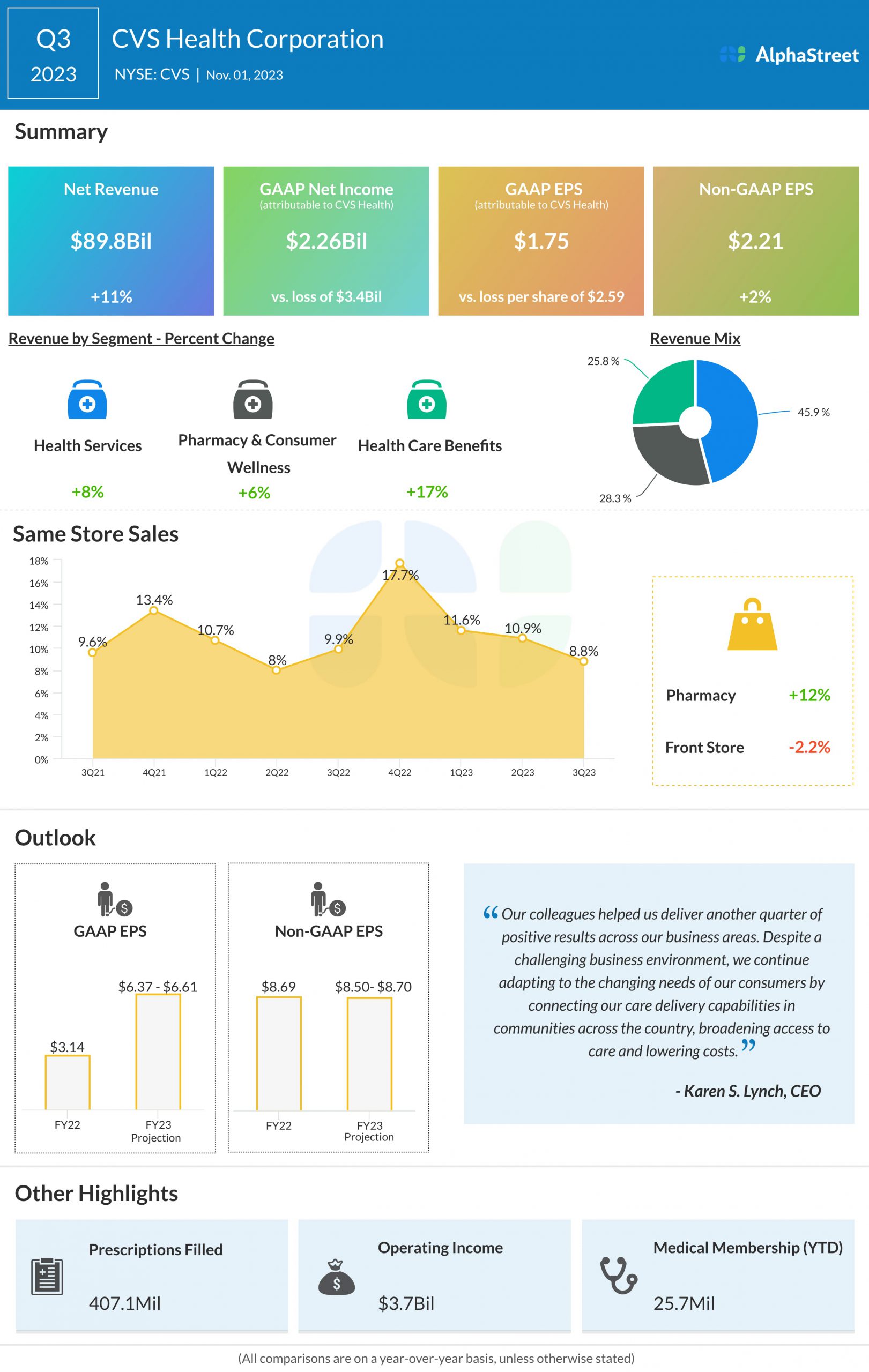 CVS Health Corporation (NYSE: CVS) reported third quarter 2023 earnings results today.