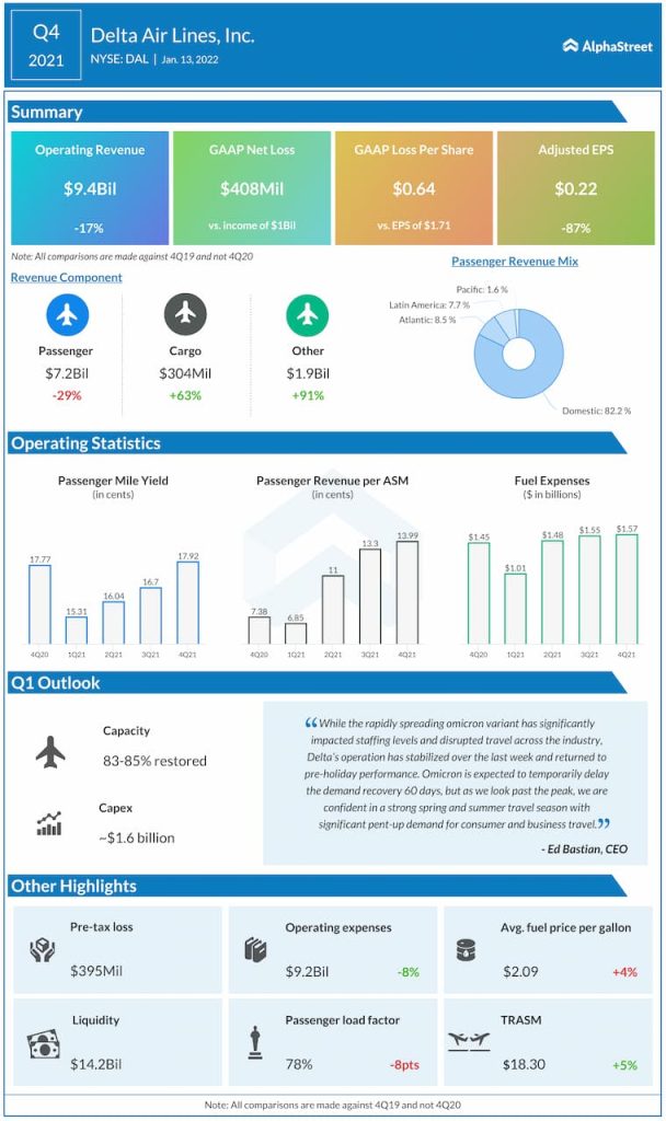 For the first quarter of 2022, Delta expects adjusted revenue to recover to 72-76% of 2019 levels.