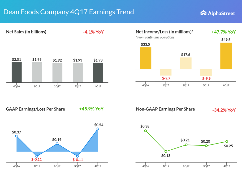 For 2018, the company expects to deliver adjusted EPS in the range of $0.55 to $0.80. Additionally, it expects the first quarter earnings to be disproportionately lower than the fourth quarter of 2017. Dean Foods anticipates an increase in adjusted EPS as it moves through the year and into 2019.