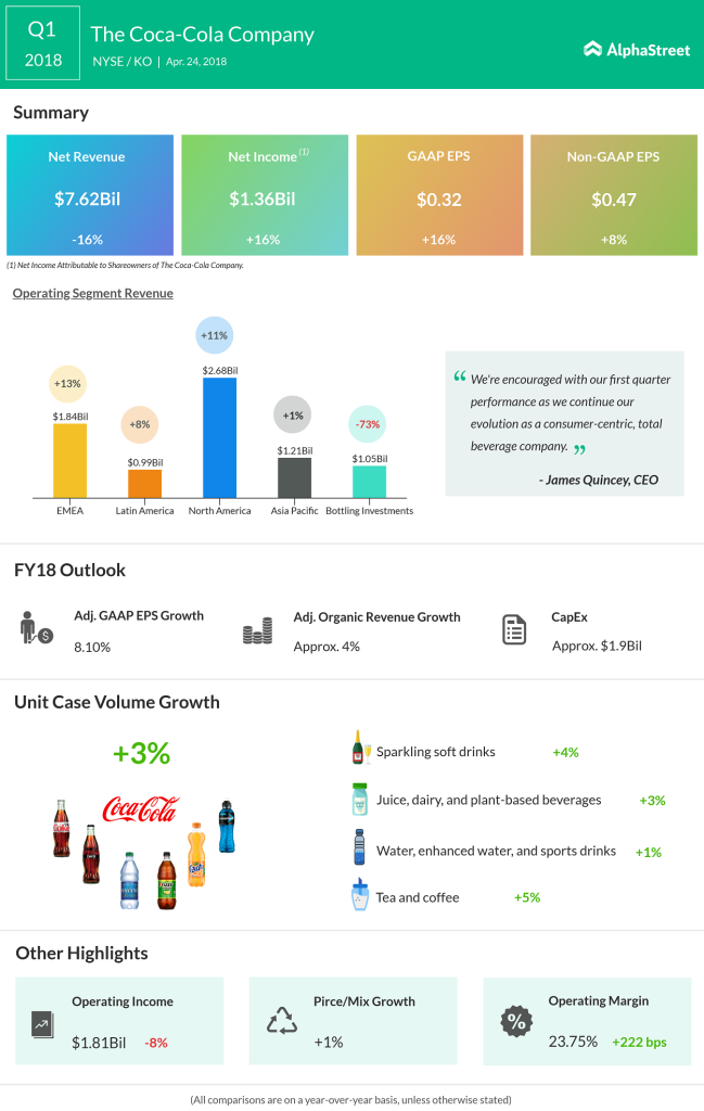 Last year, the company launched Coca-Cola Zero Sugar, which has been selling well for the past two quarters. In North America, the beverage giant’s biggest market, Coke Zero Sugar posted double-digit growth in the quarter. Product revamp done by the company in line with customer expectations seem to be bearing fruit. The world’s largest beverage company said it on the right path to achieve its full year outlook.