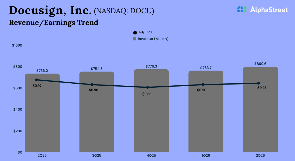 Docusign, Inc. (NASDAQ: DOCU) reported its second quarter 2026 earnings results.