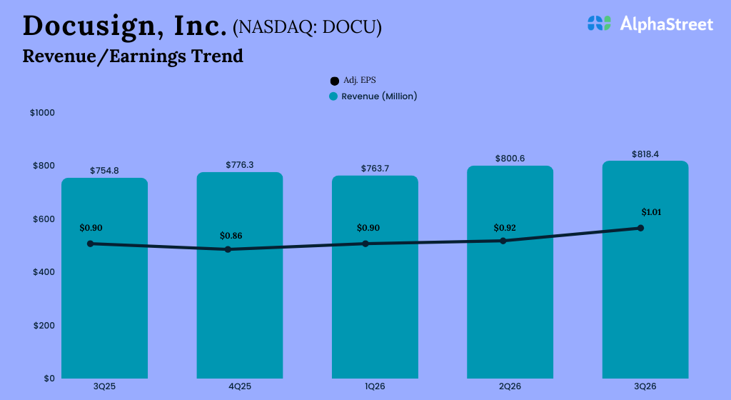 Docusign, Inc. (NASDAQ: DOCU) reported its earnings results for the third quarter of 2026.