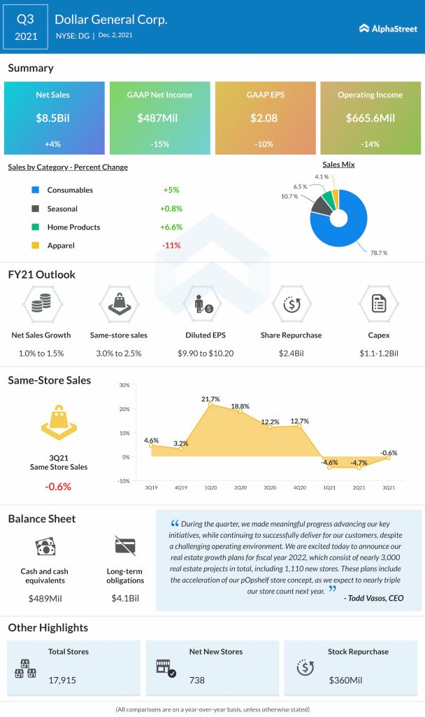 Dollar General Corporation (NYSE: DG) reported third-quarter 2021 earnings results today.