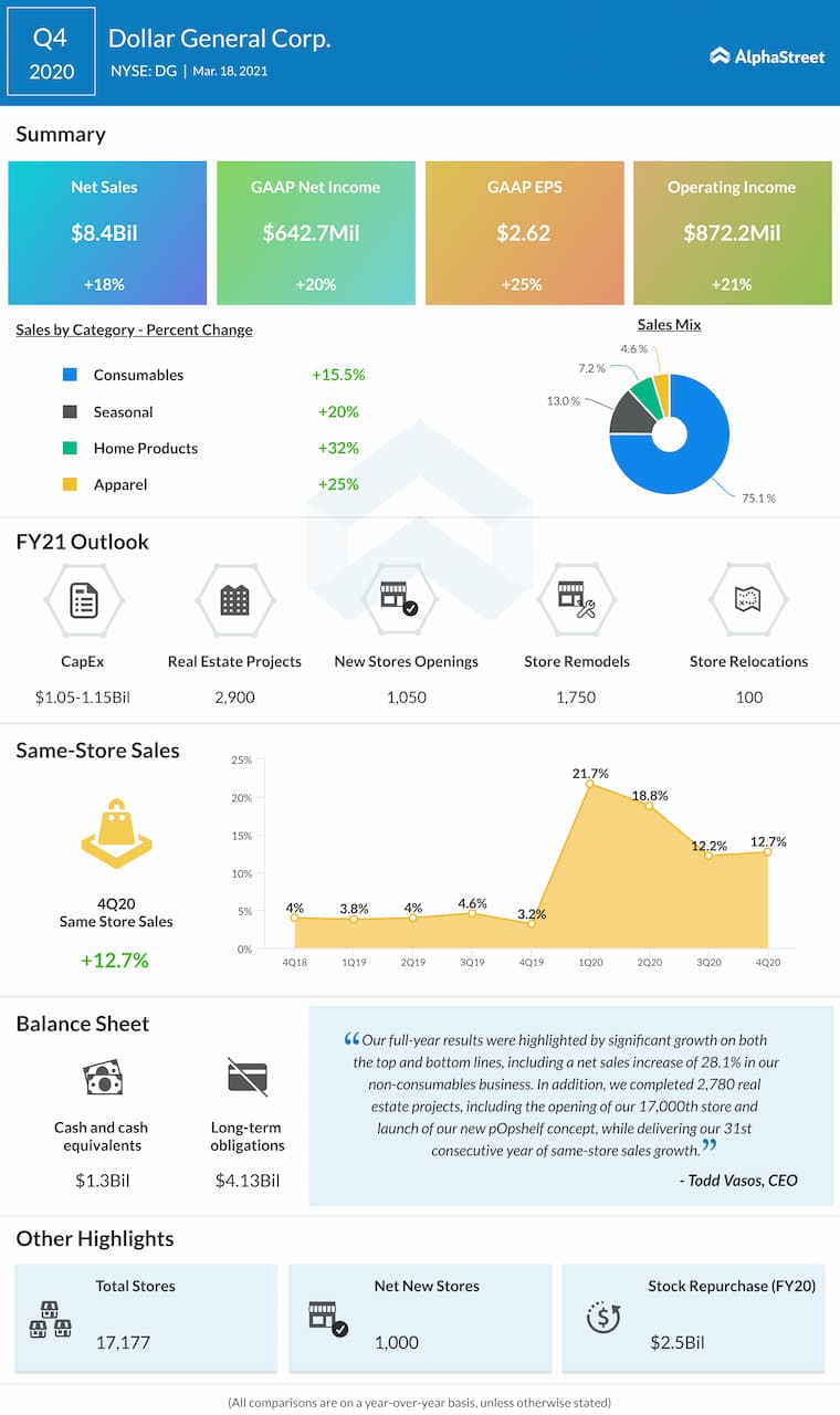 Dollar General Corporation (NYSE: DG) reported fourth quarter 2020 earnings results today.