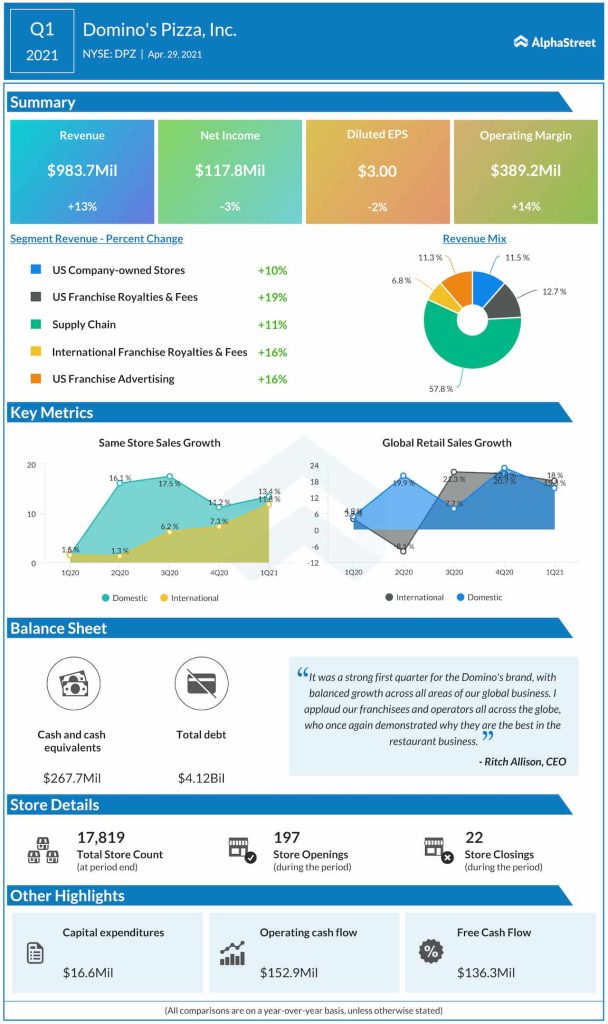 Read management/analysts’ comments on Domino’s Pizza’s Q1 report