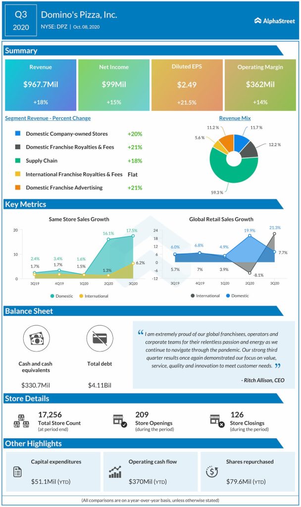 US same-store sales grew 17.5% during the quarter, helped by customer ordering behavior during the COVID-19 pandemic.