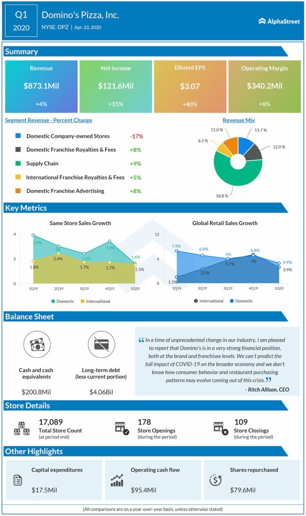 Due to the current uncertainty surrounding the global economy and the company’s business operations considering COVID-19, the company is withdrawing its two-to-three-year outlook for global retail sales growth, US same-store sales growth, international same-store sales growth, and global net unit growth. As of April 21, 2020, the company estimates that about 1,750 international stores are temporarily closed due to the lockdown arising from the pandemic.