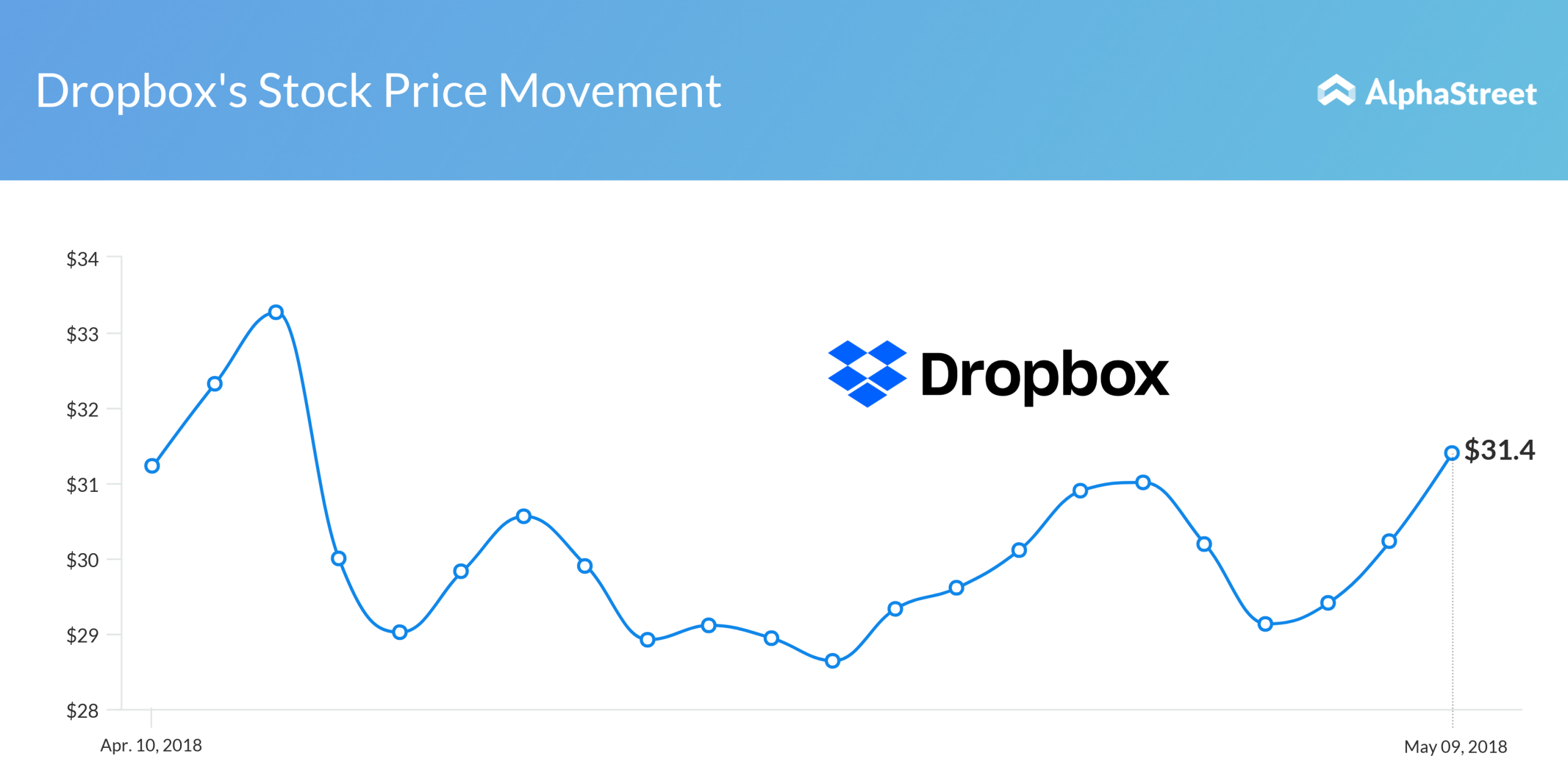 Dropbox delivered a kickass IPO performance in March and started trading at $21, above the updated price range. The stock currently trades at $31.78 and has a price target of $33.15. According to analysts’ consensus, the cloud storage firm is projected to report non-GAAP EPS of $0.04 per share, on revenue of $309.2 million in the first quarter.