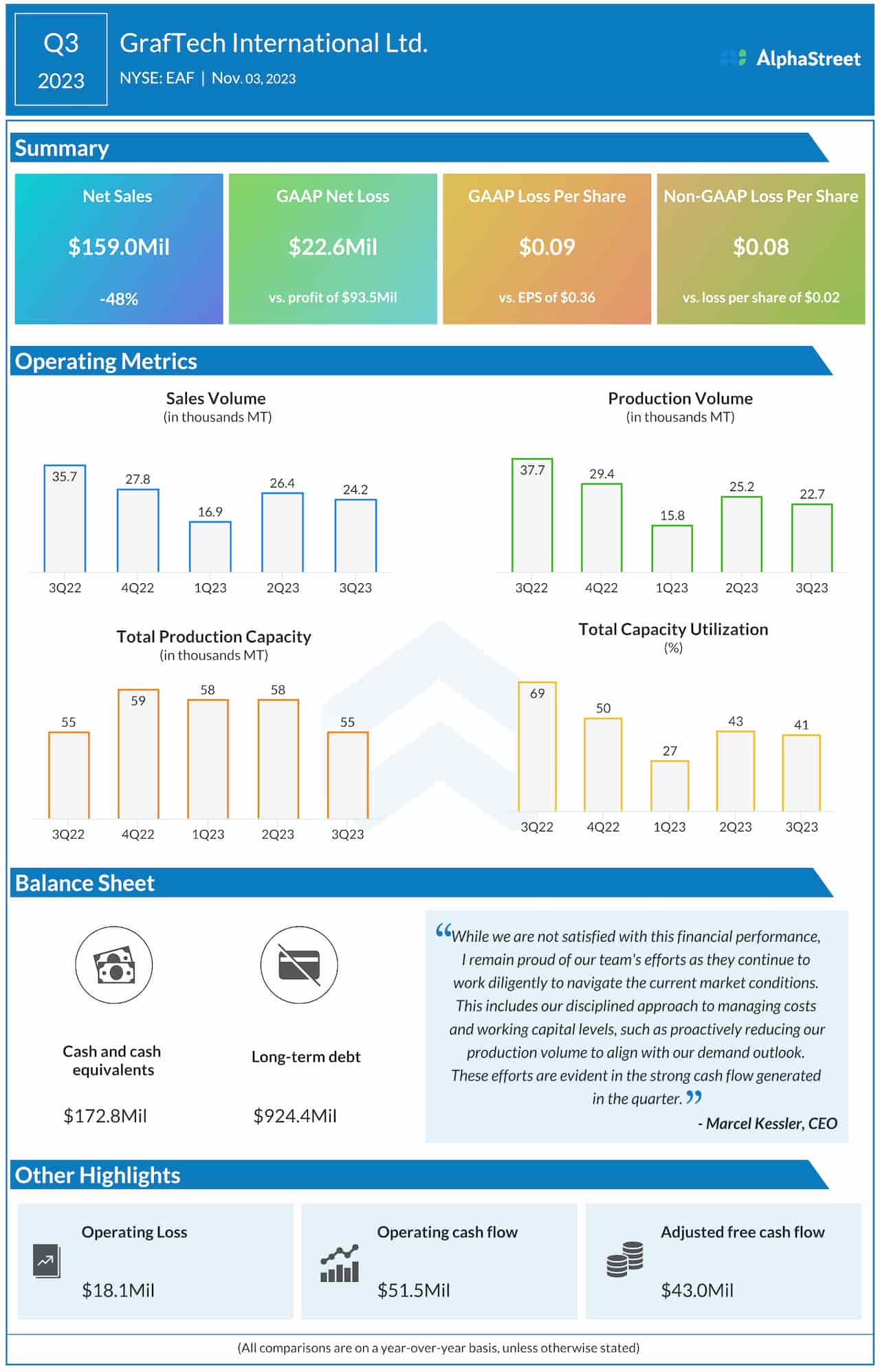 GrafTech International Ltd. (NYSE: EAF), a manufacturer of graphite electrode products, reported a net loss for the third quarter of 2023 when the company’s sales declined 48%.