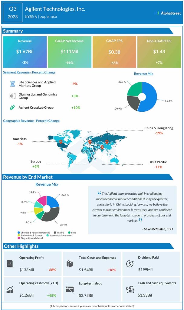 “Looking forward, we believe the current market environment is transitory, and are confident in our team and the long-term growth prospects of our end markets,” said Agilent’s CEO Mike McMullen.