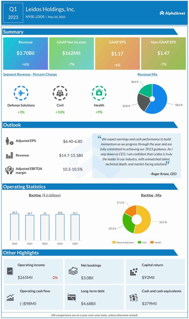 At $3.70 billion, first-quarter revenues were up 6% year-over-year. Revenues of all three operating segments increased during the three-month period.