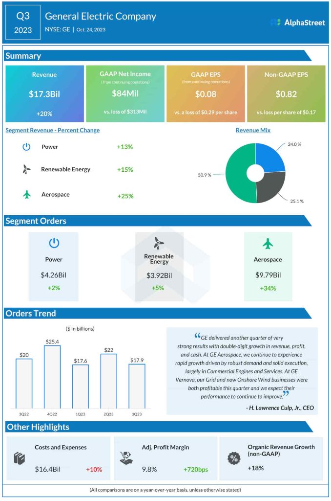 “At GE Aerospace, we continue to experience rapid growth driven by robust demand and solid execution, largely in Commercial Engines and Services. At GE Vernova, our Grid and now Onshore Wind businesses were both profitable this quarter and we expect their performance to continue to improve,” said Lawrence Culp, chief executive officer of GE.