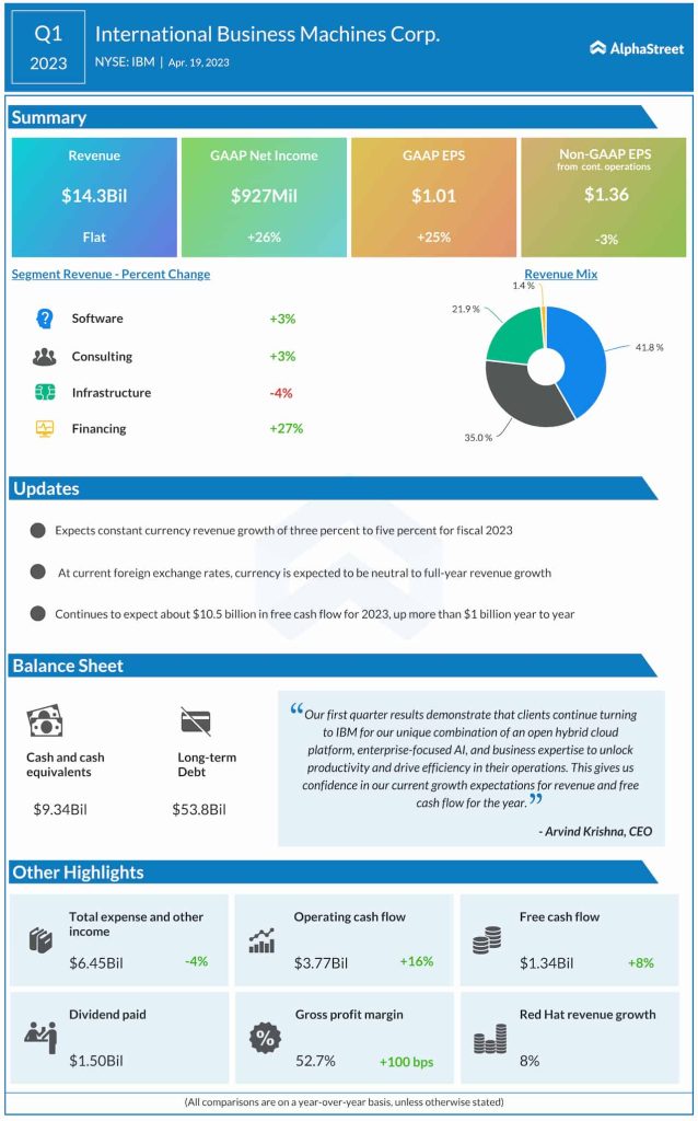 “Our first quarter results demonstrate that clients continue turning to IBM for our unique combination of an open hybrid cloud platform, enterprise-focused AI, and business expertise to unlock productivity and drive efficiency in their operations,” said IBM’s CEO Arvind Krishna.