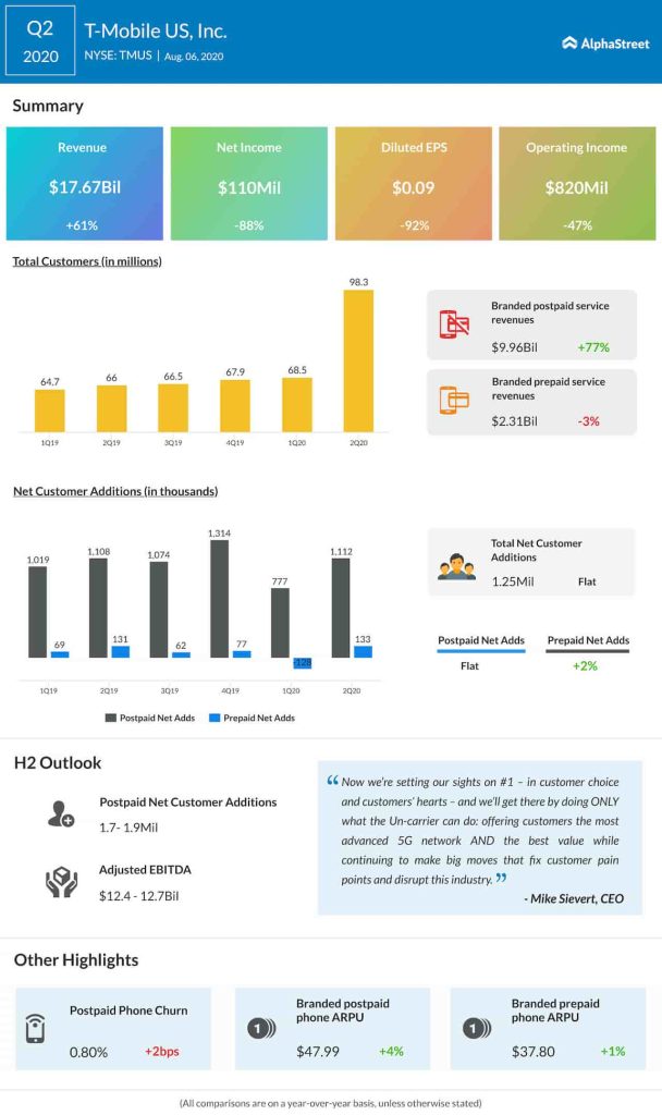 Earlier, TMobile’s stock rebounded quickly from the COVID-induced selloff and is currently trading close to the recent peak. The stock closed Thursday’s trading slightly higher and gained further during the extended session.
