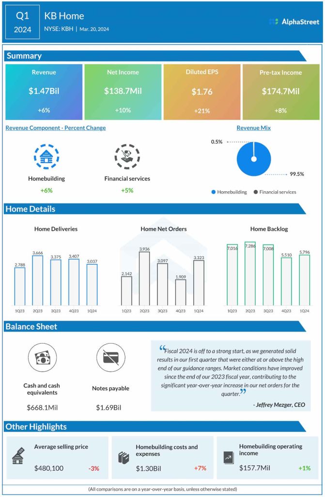 In the first three months of fiscal 2024, net income increased to $138.7 million or $1.76 per share from $125.0 million or $1.45 per share in the same period of 2023. The bottom line topped expectations for the fourth time in a row. At $1.47 billion Q1 revenues were up 6% year-over-year but fell short of expectations. This marks the eighth consecutive quarter where revenue has missed analysts’ projections. The top line benefitted from a strong performance by the core Homebuilding segment. Net order value increased 58% to $1.58 billion during the three months.