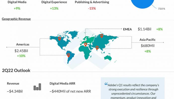 Design software maker Adobe Inc. (NASDAQ: ADBE) Tuesday said its first-quarter revenues increased amid stable demand for products. Earnings and revenues beat