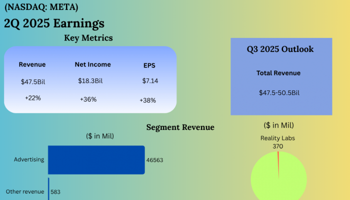 Meta Platforms, Inc. (NASDAQ: META) reported its second quarter 2025 earnings results today. Revenue was $47.52 billion, up 22% year-over-year on both a