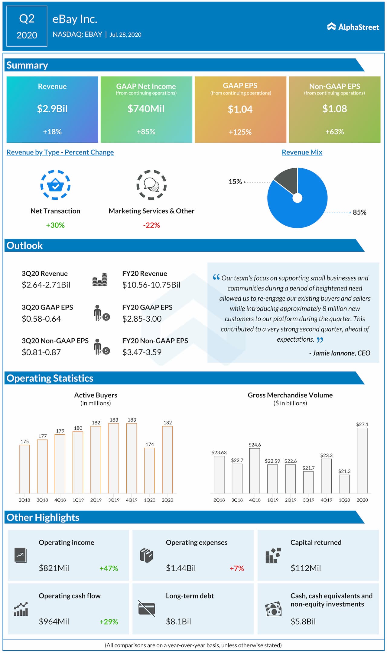 Ecommerce firm eBay Inc. (NASDAQ: EBAY) reported second quarter 2020 earnings results today.