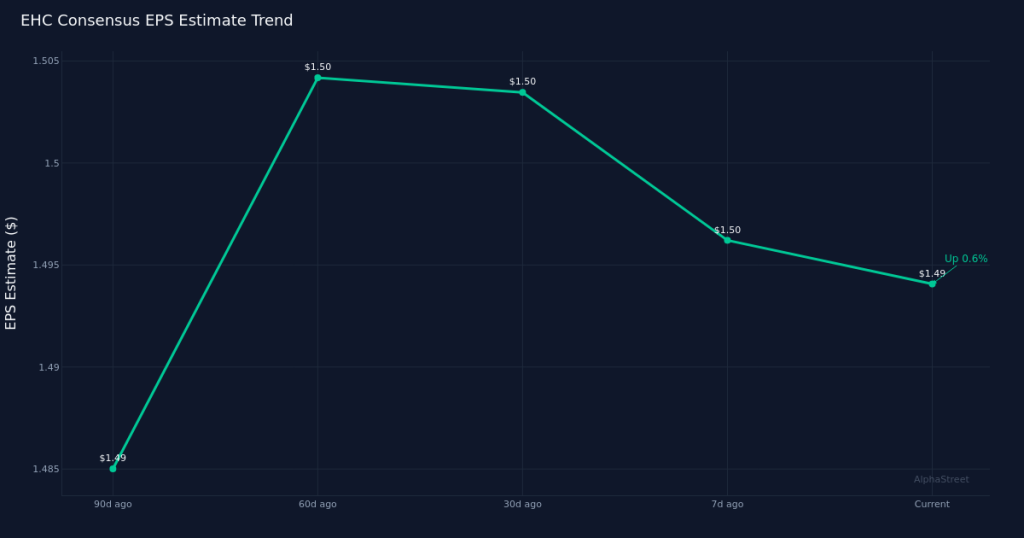 Wall Street is looking for Encompass Health Corporation to deliver $1.49 per share in earnings on revenue of $1.57 billion when the rehabilitation hospital operator reports first-quarter 2026 results on May 1st. Twelve analysts cover the stock, with EPS estimates ranging from $1.38 to $1.53 and revenue projections spanning $1.56 billion to $1.58 billion. The consensus figures suggest continued growth momentum for the nation’s largest operator of inpatient rehabilitation facilities as the company scales its network and captures demand from an aging patient population.
