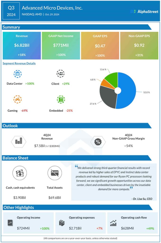 Revenues increased to $6.82 billion in the September quarter from $5.8 billion in the comparable period of fiscal 2023, as the recovery in chip demand continued.