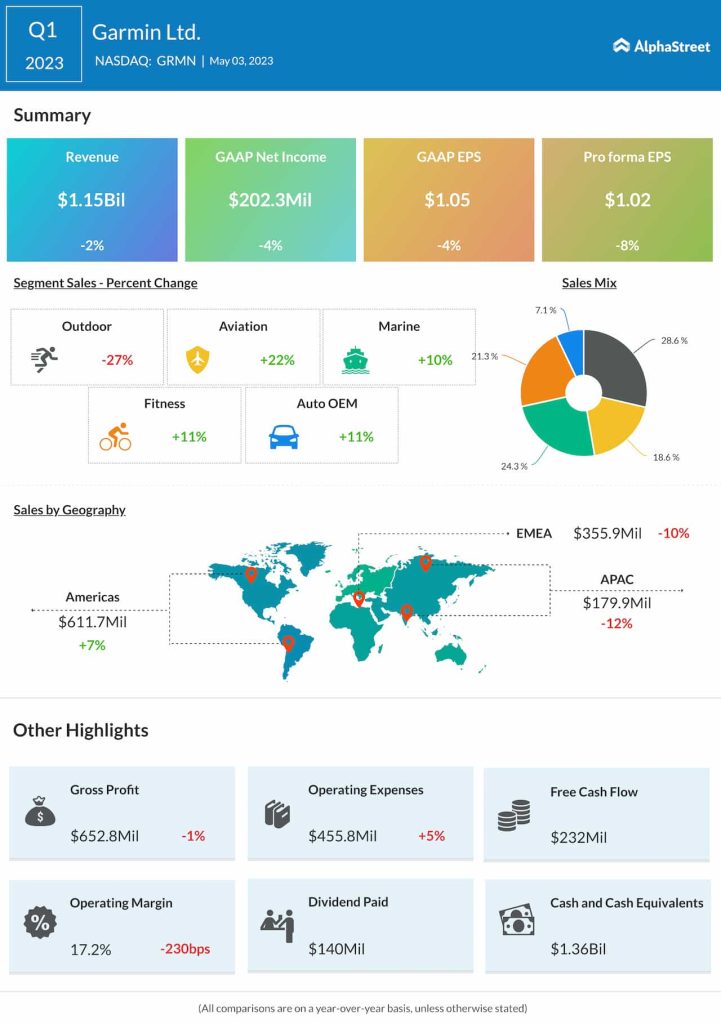 Cliff Pemble, CEO of Garmin, said, “2023 is off to a good start with four of our five segments posting double-digit revenue growth driven by new product introductions and solid demand trends.”