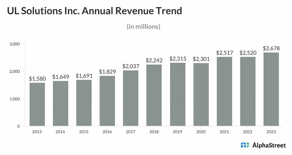 For the year ended December 2023, UL Solutions reported revenue of $2.68 billion, compared to $2.52 billion in the previous year. Industrial and Consumer revenues grew 10% and 4% respectively, while Software & Advisory revenue moved up 3%. Meanwhile, net income decreased to $276 million from $309 in 2022, reflecting higher expenses.